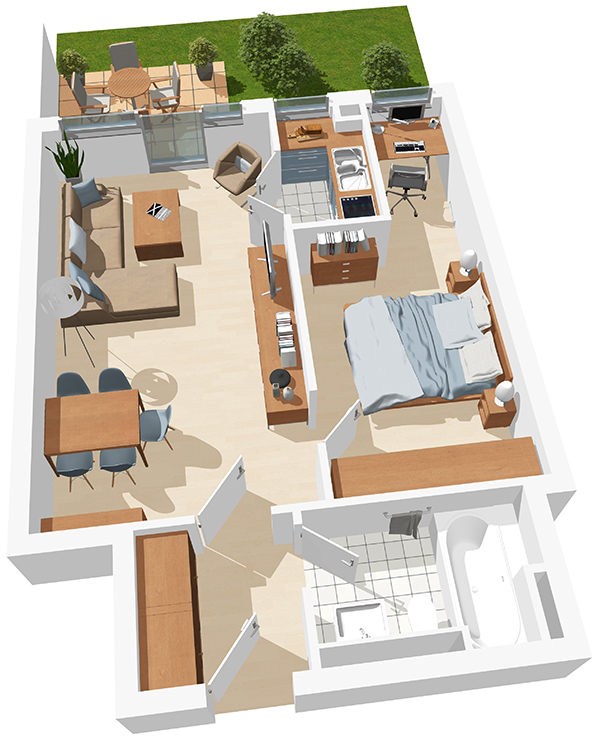Dieser Verkauf wird durch eigene Objektseiten im Internet und moderne Marketinginstrument wie zum Beispiel 3D-Illustrationen, Objektvideos oder 360 Gradrundgänge unterstützt.